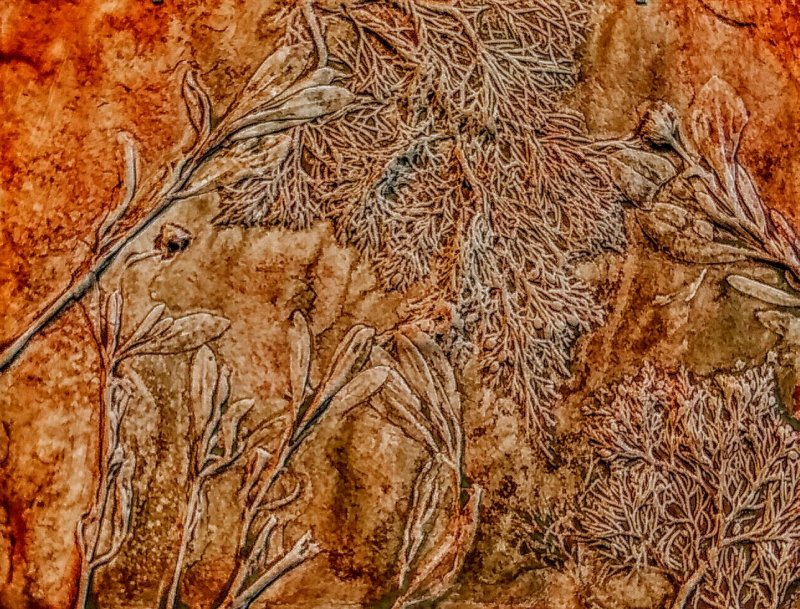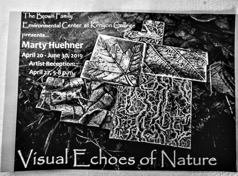 Afterward, two of us went to the Brown Family Environmental Center to see the art exhibit “Visual Echoes of Nature”. I have been meaning to go for a while and finally made the time. The artist is Marty Huehner and he is local (right around the corner from me). He works in clay and sometimes dental alginate. His works are quite lovely and interesting and, if you are local, I recommend that you go see it. The exhibit will be there until June 30. Following are some photos: