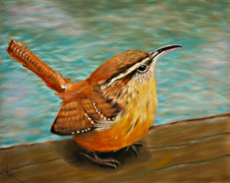 This was a commission. I had never heard of a Carolina Wren, until this commission brought it to my attention and now I see them all over the place, especially on our back porch. The other day, Toby was doing his business while a Carolina Wren was giving him what for. Poor boy! LOL! They are very nice little birds and I love to hear them.