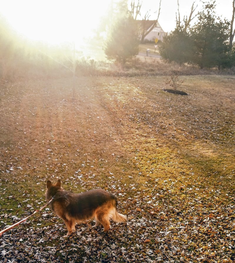 And I leave you with this image. The sun was rising over the pine trees and Toby just happened to pose in such a way as to make it look like the aliens were landing to take him away. LOL! He was actually looking for one of the local stray cats.