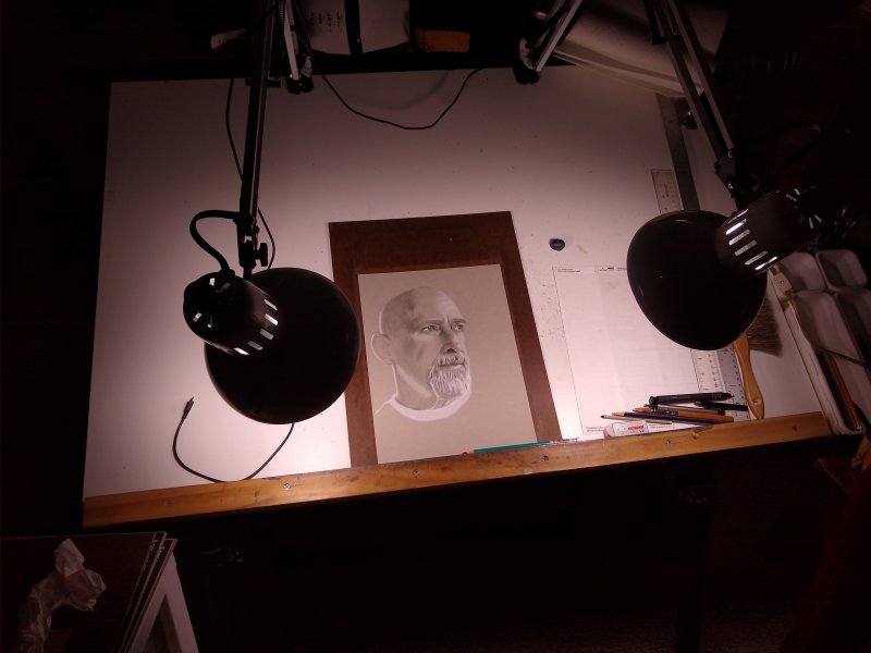 I am working on my portrait for the swap. He is also working on my portrait. He is doing an oil painting. I feel a little guilty giving him a pencil drawing when he is doing such a beautiful painting…