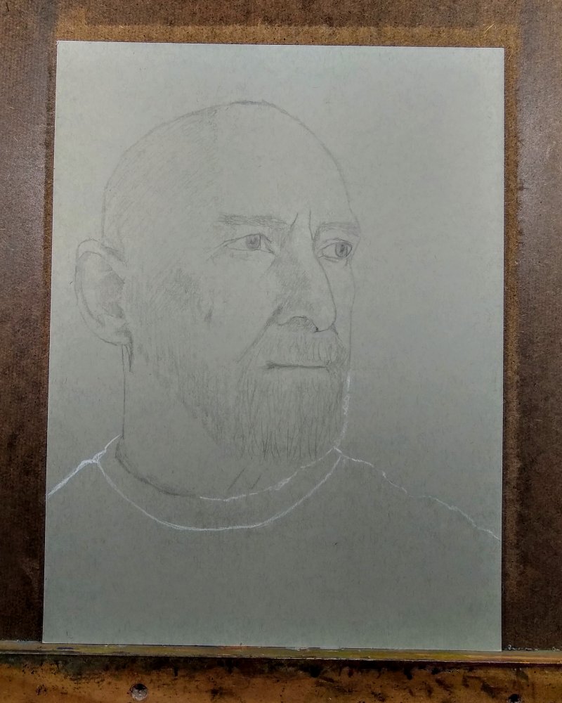 Well, I finished my end of the swap. I can’t wait to see his portrait of me. Vanity, vanity! All is vanity! LOL! This portrait swap is almost like doing a self-portrait without that particular angst. Anyway, here he is. Mixed media on Strathmore toned mixed media paper. I hope he likes it.