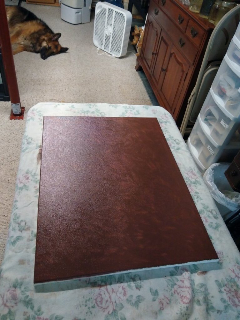 I have toned my canvas for several paintings that I have done, but the last two, plus the one I am working on now, I have not. I now understand why it is done. At least for me, it is very difficult to cover the white of the canvas with the paint that I am using for the painting. It takes a lot of paint and a lot of medium to get it to spread well enough to fill in all the nooks and crannies of the canvas and get that white covered. But, when you tone a canvas with a color that will work well with the finished painting, if you miss some spots, they are not very visible. In fact, the color of the toned canvas can work so well with the end picture that it actually enhances it. But, when I am in a hurry to get started on a picture and I don’t have a canvas, toned and dry and ready, I will use the white one and regret it. So, this morning, I decided to tone a few and hope they dry soon. I mixed alizarin crimson, phthalo blue, and azo yellow to make a nice neutral brown, added some flake white replacement, some solvent free gel, and some gamsol and painted it on. I wonder if I am the only one to have a toned canvas and think to myself, “Oh! That is so pretty! I hate to think of painting on it and messing it up…” LOL! I love the color and the texture. Toby, however, thinks it is all boring and he wants to go outside and play with the rabbits and the cats who are taking over the neighborhood.