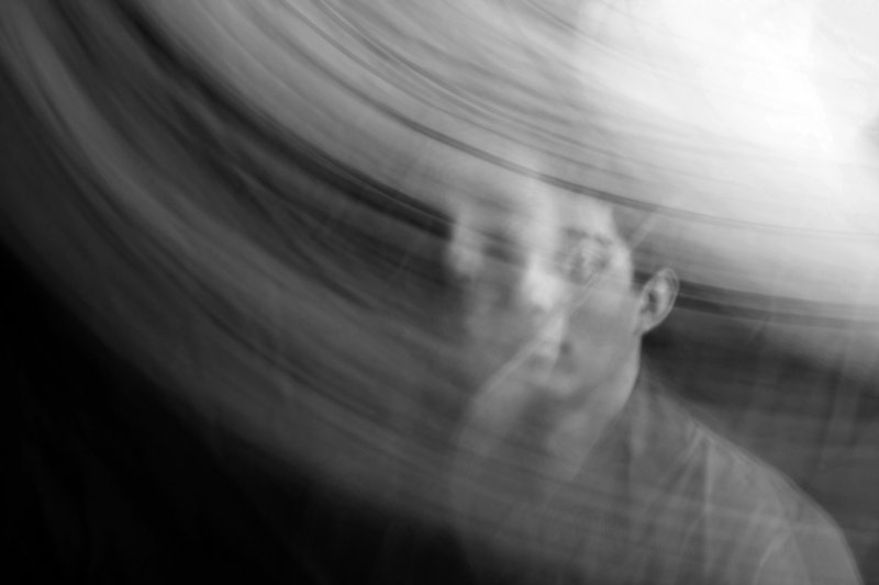 The first and last shot of Mr. K. were of him moving while the camera was on a tripod. The two middle shots, the camera was handheld and I swung the camera around while the shutter was open.