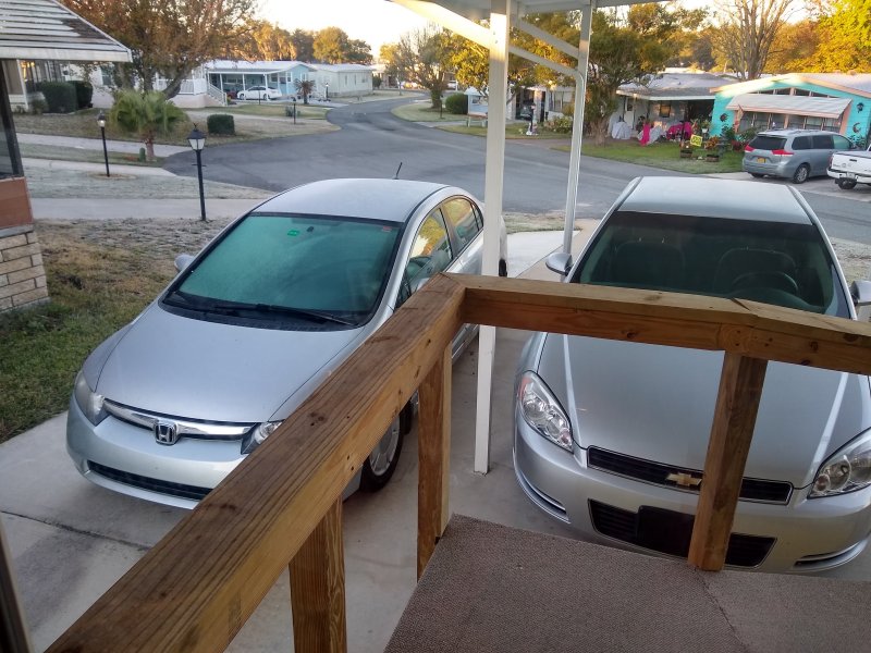 We woke this morning to a frost. Wow! The first frost in our new home. I opened the blinds and looked outside and said, “Is that frost?” LOL! Yes. Yes, it was. So, I took some photos, but you can’t really see it. Oh, I guess you can in the neighbors yards to the left. You can also see, across the street, some sheets on plants. It is warm out now (2:10 p.m.).