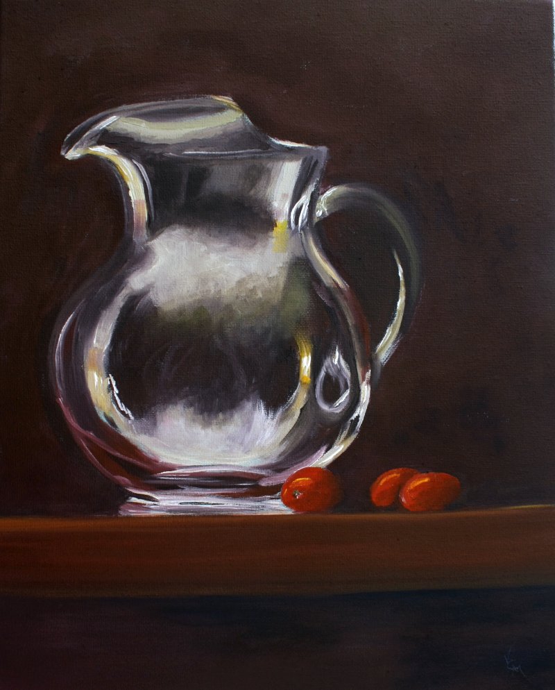 This is a painting of a pitcher that I love. I just love collecting pitchers, mostly little ones, but this one is pretty big and lusciously curvy. I love it.