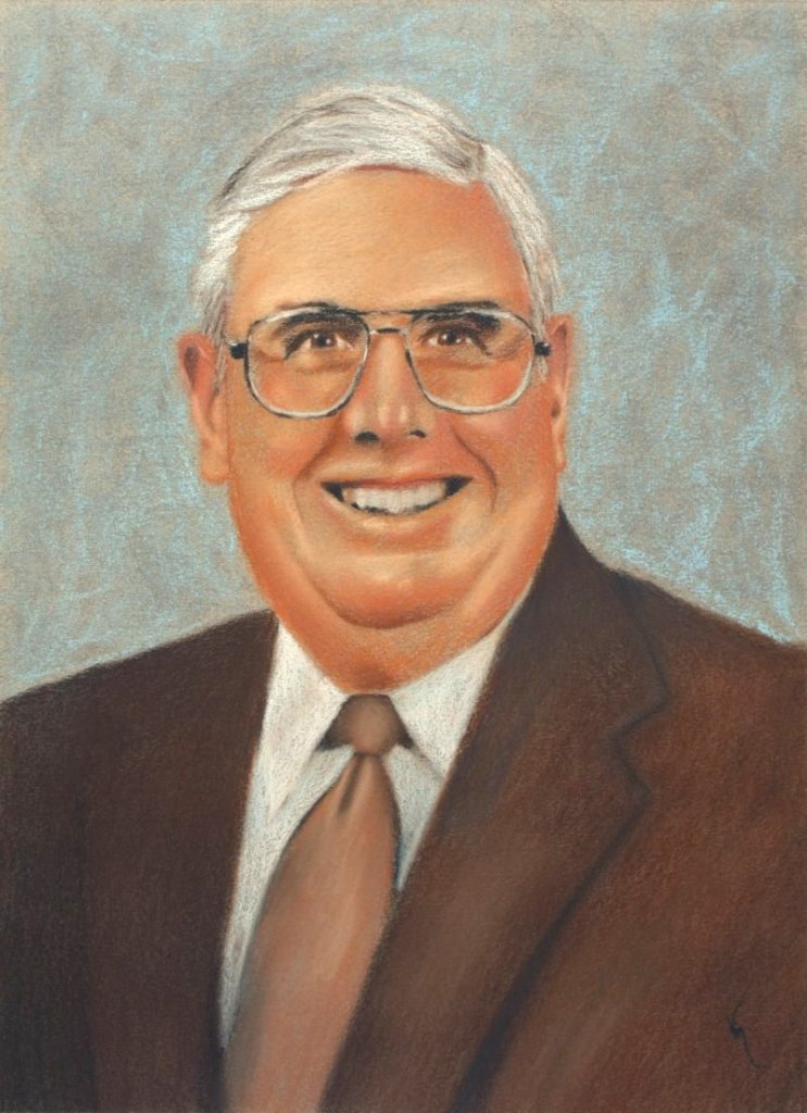 This is a portrait made with pastel pencils on grey-toned paper, approximately 11×15. I originally started it with the intention of it being a monochrome, but I ended up introducing other colors, starting with the blue background. Pastor Bob was Mamoo’s pastor and we appreciate all he has done for us and for her.