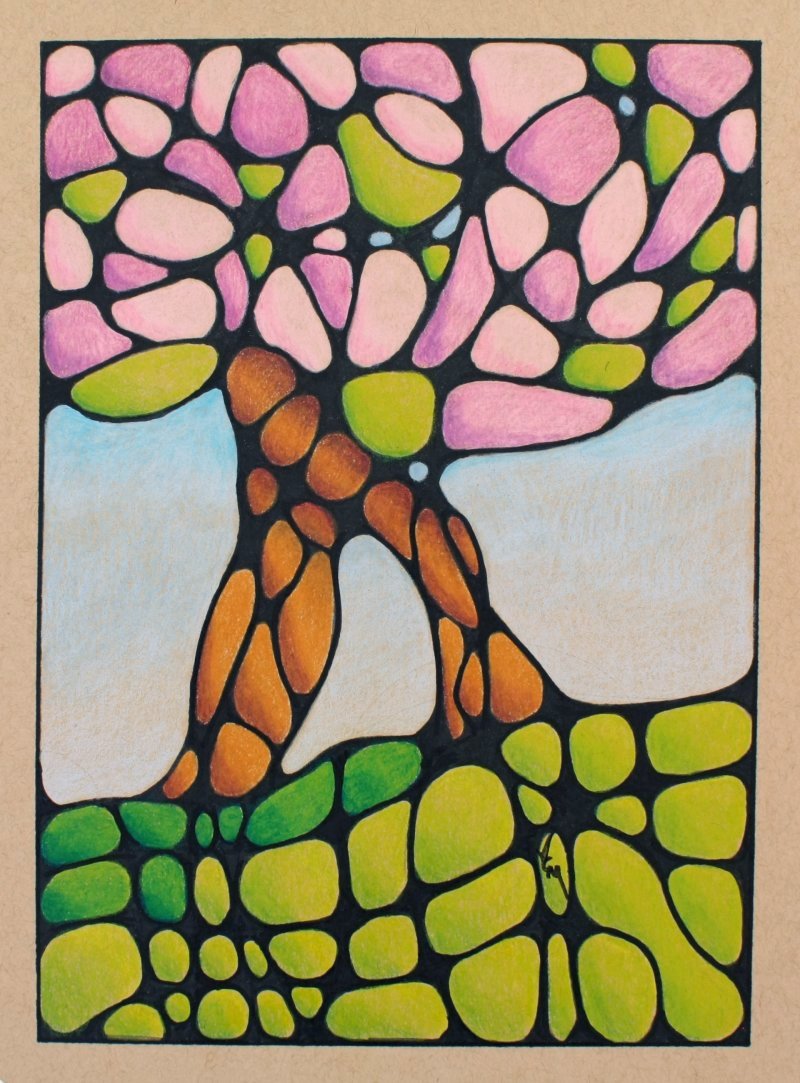 These pictures are made with sharpie pens and colored pencils. They are approximately 7.5 x 10.5 on brown craft sketch paper.