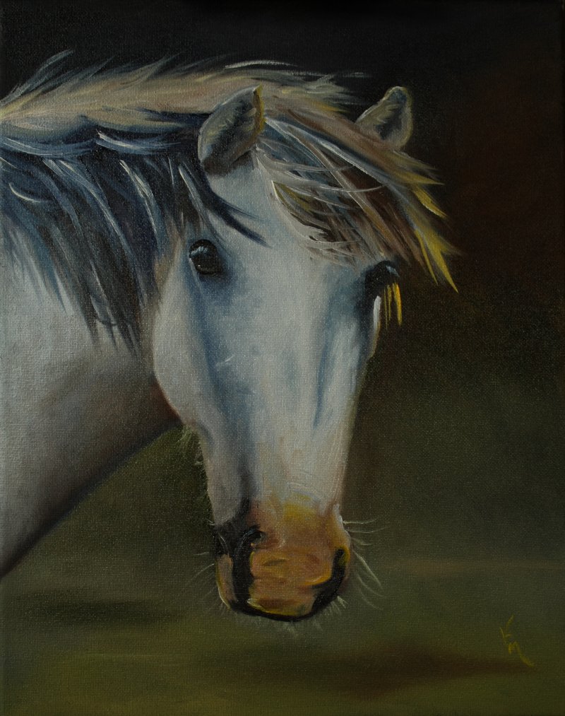 What do you call the offspring of a male aardvark and a female horse? A mule that only eats ants. My horse looks like that to me. LOL! I started out thinking that the face was too short, so I lengthened it. Then, after I was finished, I thought it looked like an aardvark! Well, other than that, I like it. I am still in training with oils, and enjoying it.
