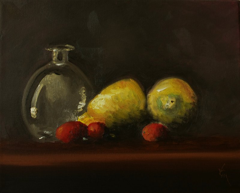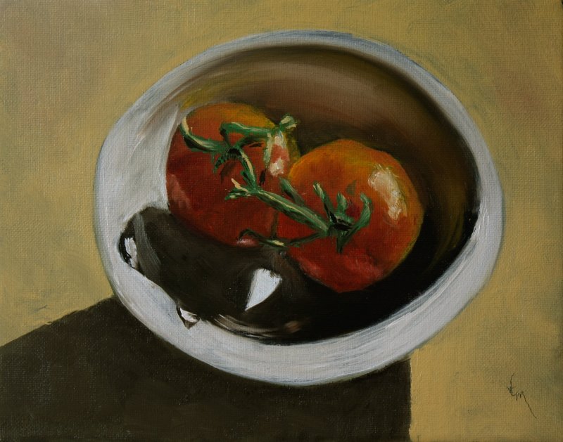 Well, here are a couple of little oil paintings to get me started, again, after so long without my oil paints. These are 8×10 on stretched canvas. These are both alla prima (all in one session, wet on wet).