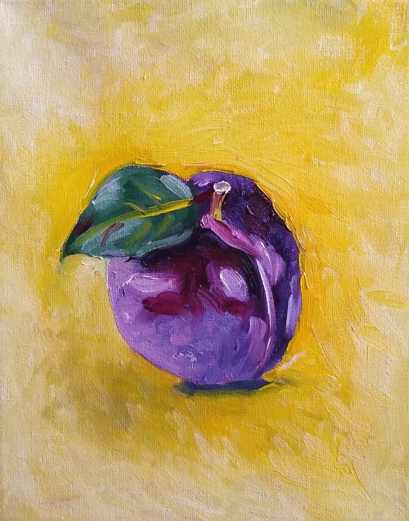 Okay, now for Eggbert. My first painting in my new studio. This is oils on an 8×10 stretched canvas. I really enjoyed painting this. I found myself singing while painting. I used yellow ochre, naphthol red, burnt umber, ultramarine blue, and titanium white, and a little linseed oil. I used two brushes, one for the background and eggcup and one for the egg. By the way, do you know which came first, the egg or the eggcup? Have any of you ever used an eggcup? Have any of you ever eaten soft boiled eggs? I don’t recall doing either of them, myself. I love a nice runny yolk with fried eggs, although we don’t eat eggs, anymore, and we don’t have chickens, either. That’s another story. Well, without further eloquence, allow me to introduce Eggbert: