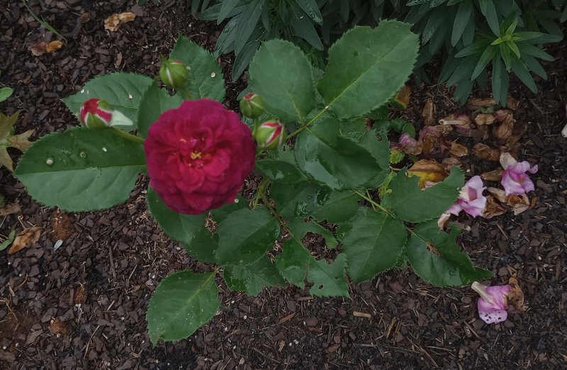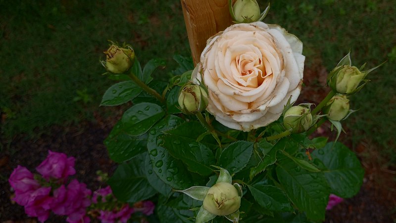 And, OH! The Roses! We have planted four more rose bushes this year in addition to the ones that my beloved planted last year. The new ones are climbers on two beautiful arbors that we put up in the front of the house.