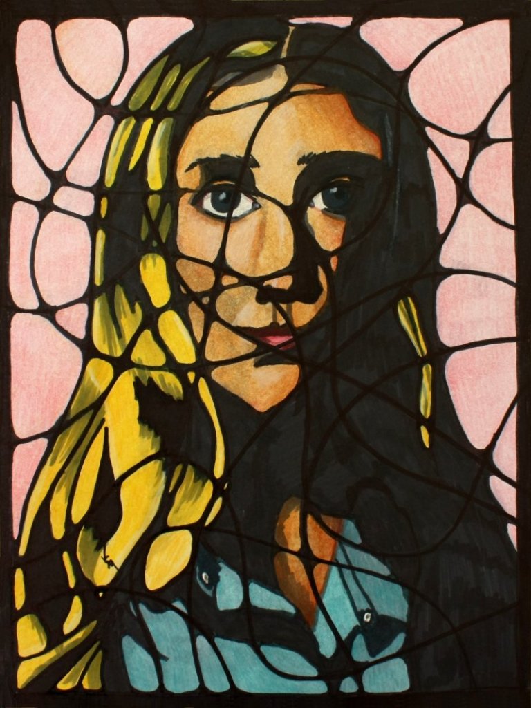 Colored pencils, alcohol markers, and sharpie on 9×12 white drawing paper.