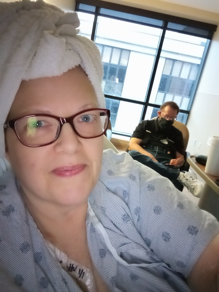 Well, I am in the hospital, again. Because of my chemo and immunotherapy, my immune system is very weak and I got a sinus infection and neutropenia, which is very low white blood cell count, which sent me spiraling into a fever. Ron took me to the emergency room on Wednesday. I got in quickly and they started all kinds of tests: covid, flu, strep, and I don’t remember them all. They also started me on broad spectrum IV antibiotics: ten bags a day!!! The idea is to kill any possible infections and try to get some white blood cells back. Well it is working, but the trips to the bathroom are becoming less fun. One thing leads to another and soon you are so full of drugs… But, God is good and He is keeping me sane and putting one foot in front of the other. This is a great hospital to be in, if you must be in one. But, I’m ready to go home.