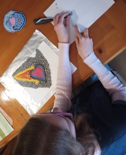 Jessica working on her clay masterpiece. “A heart being warmed by the fire of the love of God,” explains the artist.